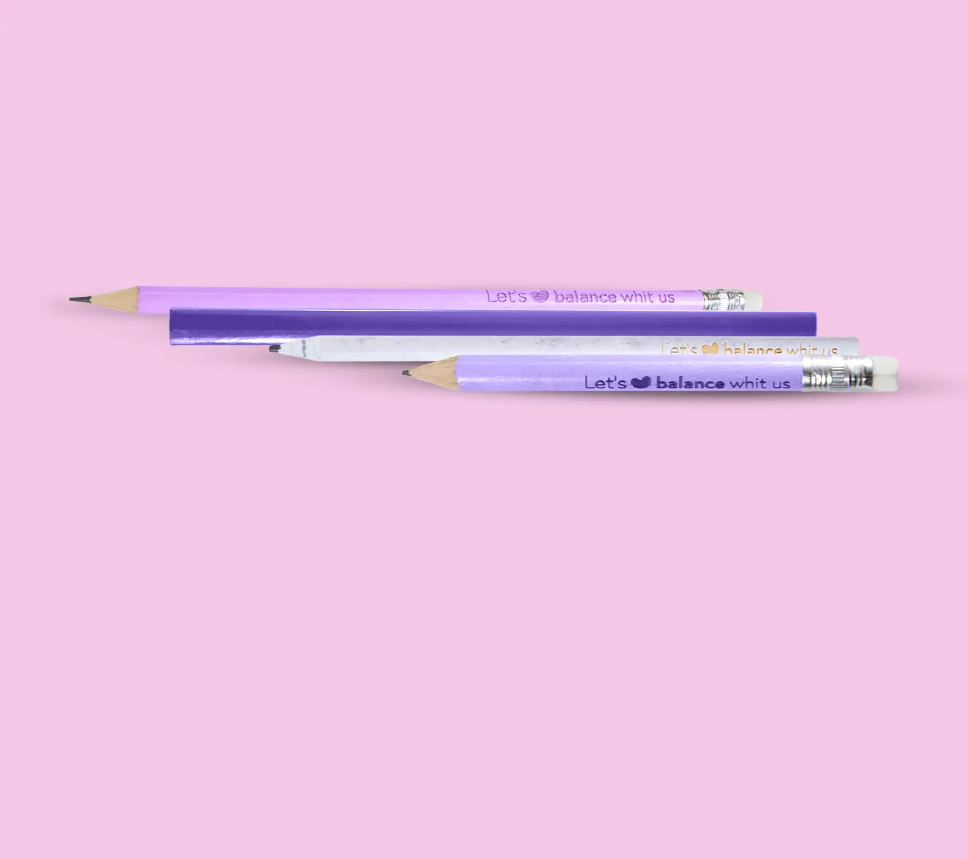 Większa wersja krótkich ołówków, wykonana z drewna i zakończona gumką. Dostępne w różnych wersjach kolorystycznych.