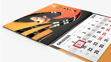 Lakier wybiórczy UV 3D pozwala subtelnie uwypuklić wybrane elementy graficzne na główce kalendarza. Dzięki niemu logotyp, napisy czy inne detale graficzne zyskują wyczuwalną pod palcami błyszczącą strukturę, co nadaje całości prestiżowy wygląd i sprawia, że kalendarz jeszcze mocniej przyciąga uwagę. więcej