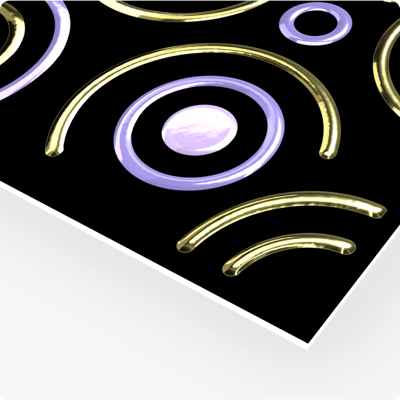 Metalizowane folie 3D w kolorach czerwonym, miedzianym, różowo-złotym oraz folia holograficzna pozwalają uzyskać efektowne, wypukłe detale na projekcie. To uszlachetnienie doskonale sprawdza się do podkreślenia tekstu, logotypu oraz innych wybranych elementów graficznych. Folia holograficzna dodatkowo nadaje powierzchni efekt hologramu – mieni się wszystkimi kolorami tęczy, zmieniając swój wygląd w zależności od kąta padania światła. więcej